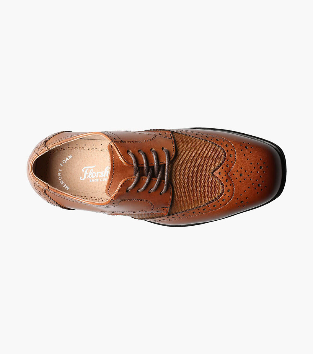 Put confidence in his step with the Florsheim Reveal Wingtip Oxford, Jr. The classic design features intricate perfing details, a modern profile, the comfort of a fully cushioned footbed, and the durability of a rubber sole.