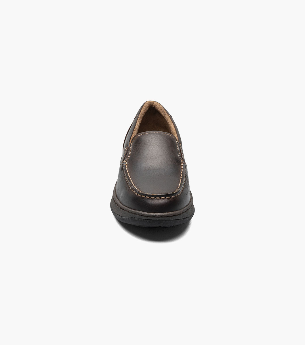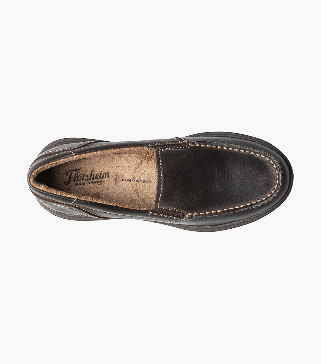 Modern style combines with the ultimate in convenience on the Florsheim Central Moc Toe Venetian Loafer, Jr. Featuring a stylish leather upper and modern wedge sole, it also has the convenience of a slip on and the comfort of fully cushioned footbed.